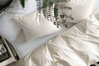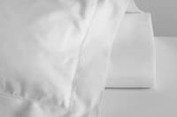 Premium long-staple cotton percale sheets, fitted full elastic to match DUX top pads perfectly.