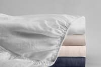 Premium soft, long-staple cotton sateen sheets, fitted full elastic to match all DUX top pads perfectly.
