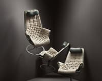 This is an iconic easy chair designed by Bruno Mathsson. The Jetson chair reflects both his obsession with comfort and a classic Swedish modern design approach. It features a bowl-shaped seat and an ergonomically designed high back with head pillow. It comes with a chrome swivel base with a unique self-return mechanism.