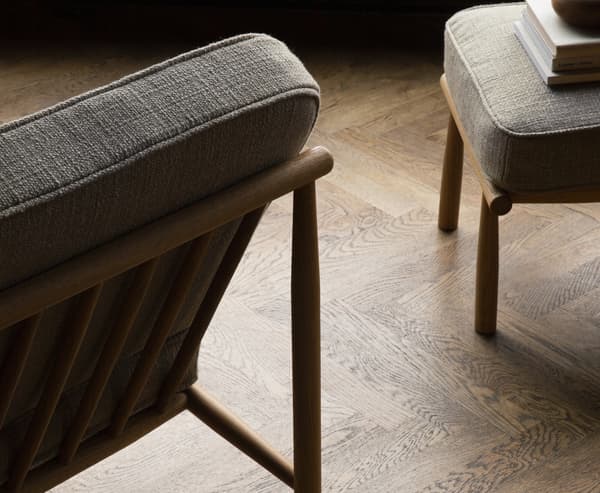 Domus chair wood has a solid oak frame treated with wax oil. The cushions come in leather or fabric and sit on wooden slats. The cushions are made of cold cured foam to ensure long-term comfort and performance. The chair has a wooden slatted back and no armrests. The chair’s small footprint makes it easy to position in any room. The chair also has a matching stool and table which are sold separately. The Domus chair was revitalised during 2020 by Norm Architects as part of the DUX Domus Collection. It was restored to the range after DUX and Norm Architects browsed through the archive of old classics during a previous collaborative project. The Domus collection consists of Domus chair Wood with matching stool, Domus chair steel and Domus table.