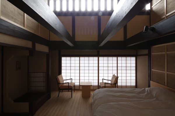 Fukuchiyama is a castle town located in the northwestern part of Kyoto Prefecture. Hishiya is located in Hishiya-cho, where the traces of a 16th-century castle town can still be found. Th area has been prone to flooding since ancient times, and houses with unique structures have been built to protect household property from water damage. Hishiya is a small inn with only four rooms that was built in the Taisho era (1912–1926) and has been restored to its original state. The innkeeper, himself a keen traveler, carefully selects local traditional arts and crafts with which to decorate the inn to welcome guests with the unique charm of Fukuchiyama.